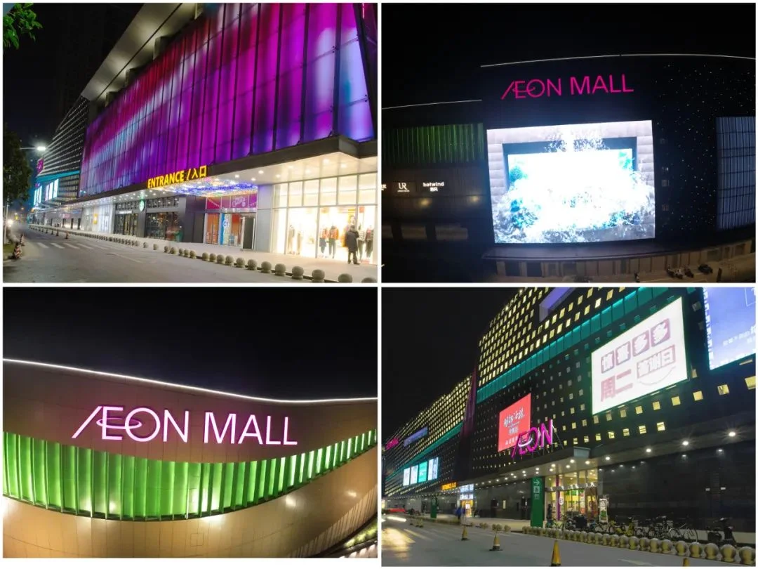 COSMIC has been focusing on the identification industry for over two decades, providing one-stop services for AEON Mall in Jiangxia, including deepening design, production, installation, maintenance, and project management. Blueview, as an important LED partner of COSMIC, actively participated in witnessing the realization of this project.