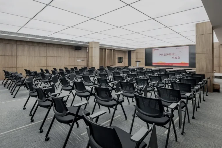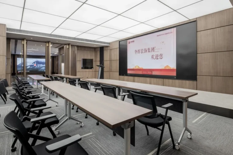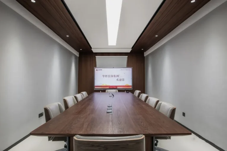The chairman's office adopts the combination of soft film luminous ceiling and anti glare downlight, all of which are connected to the smart lighting system to realize various modes such as room independent control and remote, voice, general control room detection and control.
