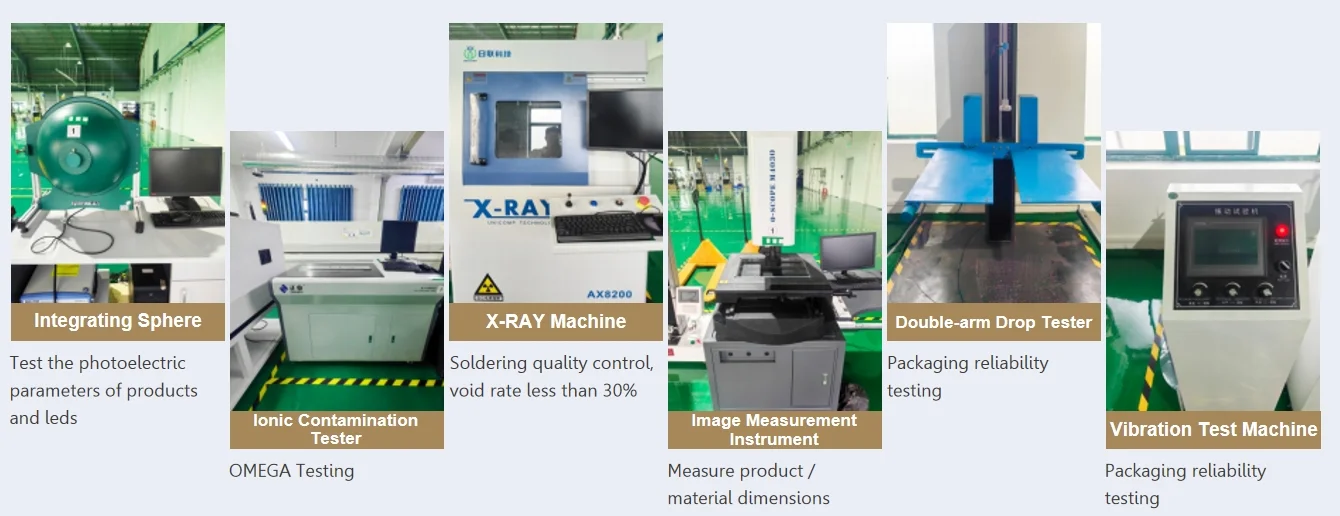 We equipped with all kinds of quality control devices, which can control the whole process from raw material to finished products, such as integrating sphere, RoHS detectors, X-RAY machine, IP rating test, drop tester and so on.