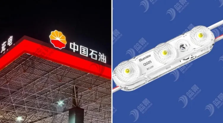For long-hour operation scenarios, we custom-designed oversized fascia letters using red and white acrylic materials specified by CNPC. These signs are illuminated with Blueview's special LED modules featuring high efficiency, integrated lenses, and full encapsulation for durability.