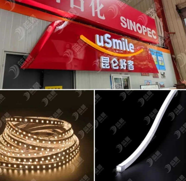 The flexible LED strip for the convenience store logo is produced using roll-to-roll processes, featuring CRI90+ for superior color fidelity. The neon used is custom-designed for the petroleum industry—integrated extrusion process, with strong weather resistance and a constant-current circuit design for high performance and reliability.