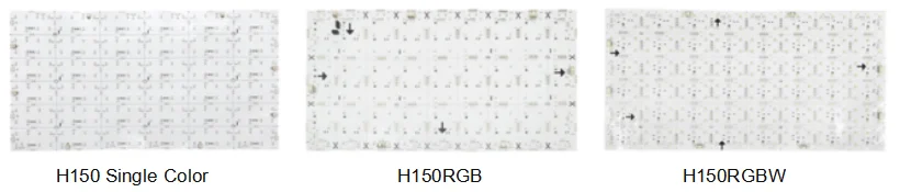 LED flexible panel sheet H150 series products have a variety of choices of single color, RGB, RGBW, and use FPC material, which can be cut into any shape;