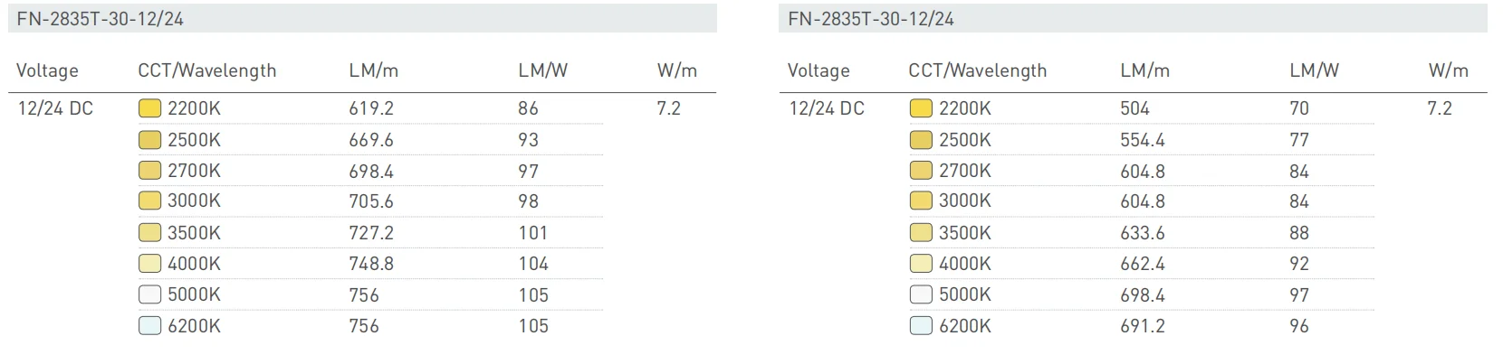 - Efficacy: CRI90+ up to 140lm/w, CRI95+ up to 130lm/w