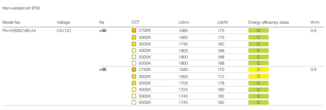 - CRI90, CRI95 optional; SDCM≤5