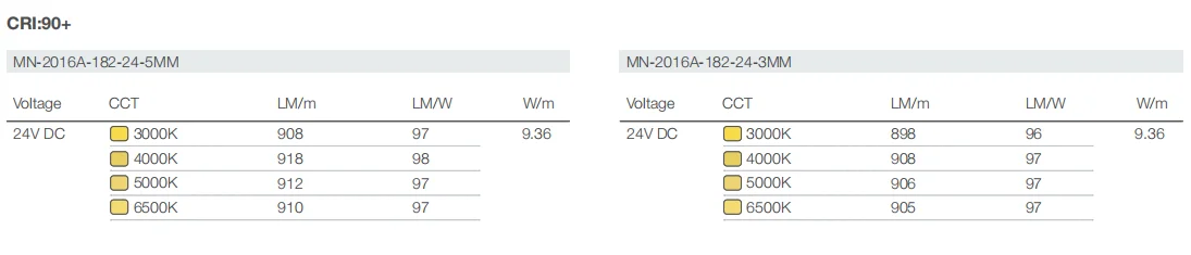 Efficacy: CRI 90+ @ 98 lm/W