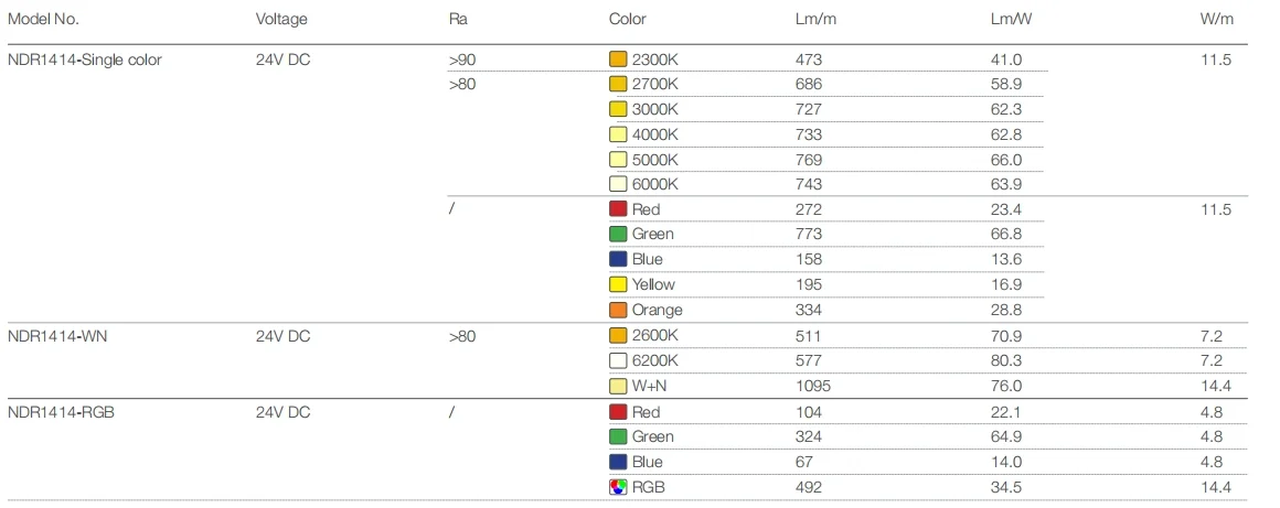 - Color options: Single color, WN and RGB.