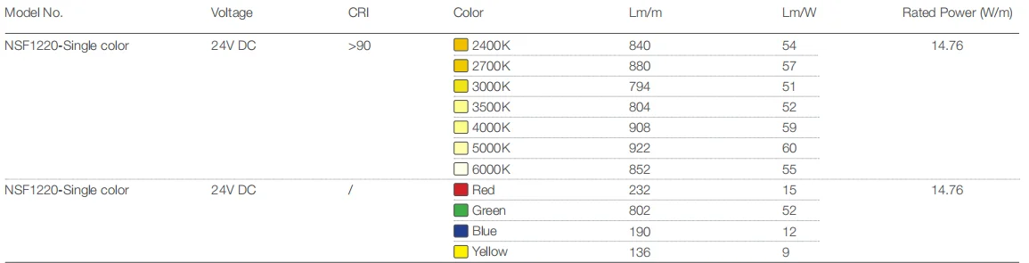 - Color options: Single color/WN/RGBW/RGBW Pixel.