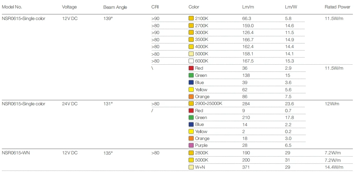 - Color options: Single color and tunable white.