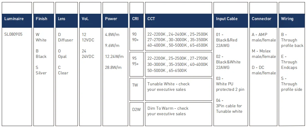 - Input Cable: Endcaps, Profifile Bottom, Profifile Sides