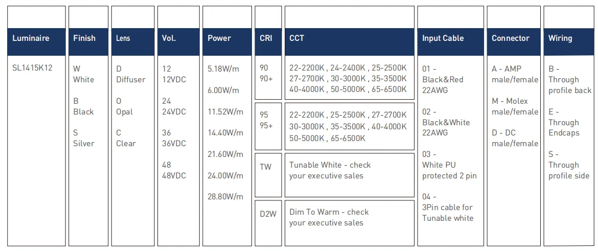 - Input Cable: Endcaps, Profile Bottom, Profile Sides