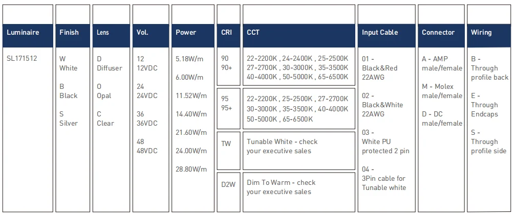 - Input Cable: Endcaps, Profifile Bottom, Profifile Sides