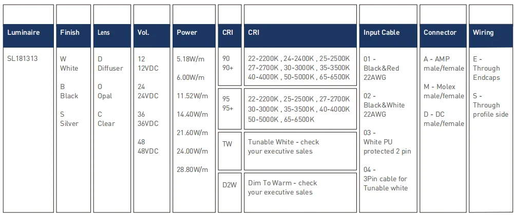 - Input Cable: Endcaps, Profifile Bottom, Profifile Sides