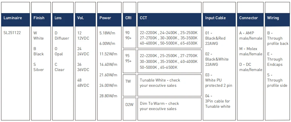 - Input Cable: Endcaps, Profifile Bottom, Profifile Sides
