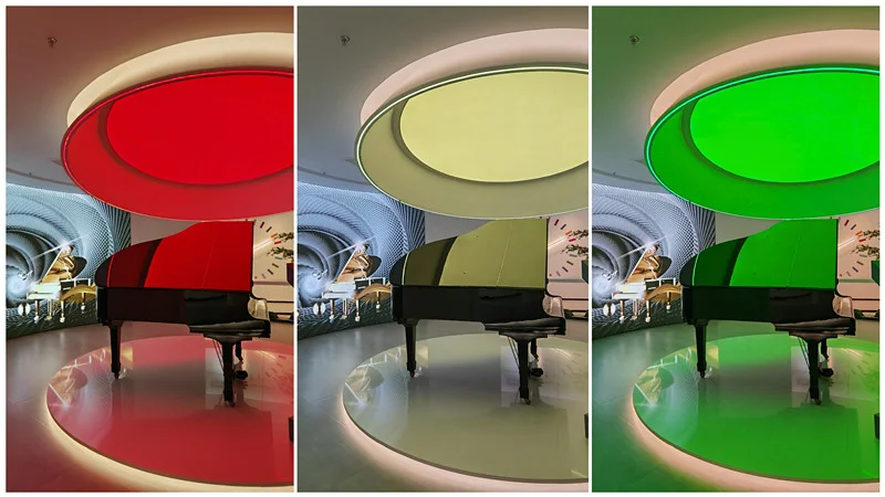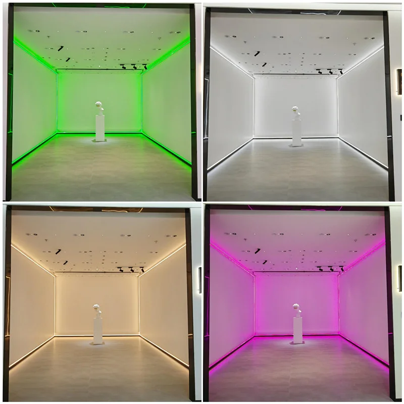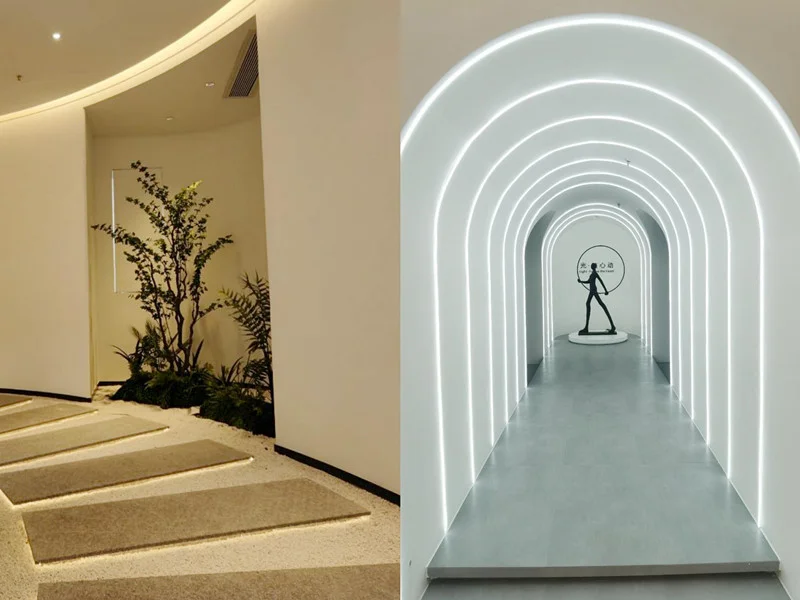 The overall space is clean and glare-free, and the changing lights seem to cast magic on the space. It integrates various mainstream LED light sources & lighting fixtures (strips, track lights, tube spotlights, magnetic track lights, projection lights, cutting lights, wall washers, wall wipers, building integration lights, etc.) , with the Blueview control system, through the basic light, accent light, ambient light, mood light, facade light, etc. to compare the horizontal and vertical effects.