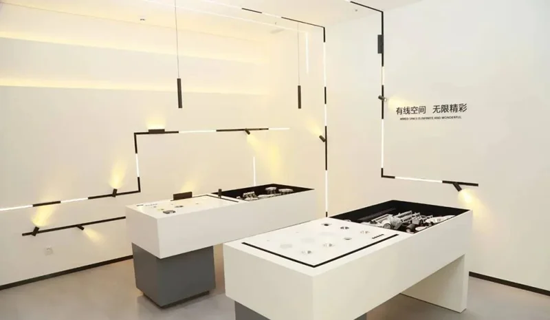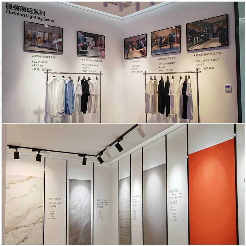 It plays a variety of self-developed leading products. Including linear lights, rail spotlights, Nice series hotel spotlights, anti-glare downlights, panel lights, magnetic lights, etc., fully and clearly presenting product performance and value.