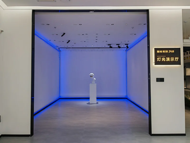 The newly invested smart lighting showroom demonstrates Blueview's high-quality lighting source and smart lighting control mode in commercial, office, clothing, display, hotel, catering, high-end customization and other industries, showing the future smart lighting development trend!